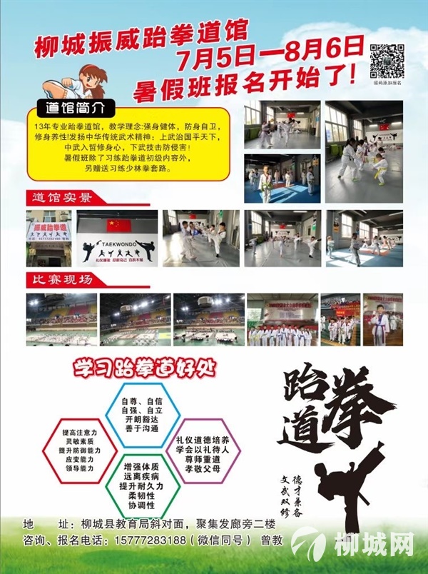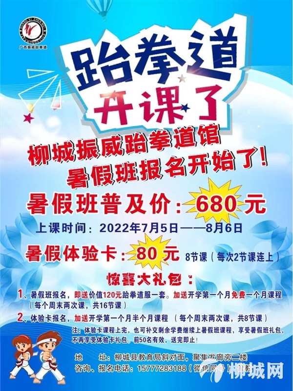 柳城振威跆拳道暑假班招生开始了!