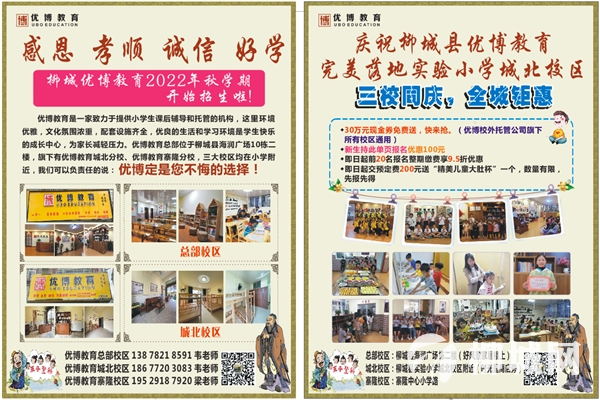 庆祝柳城县优博教育完美落地实验小学城北校区,三校同庆,全城钜惠!